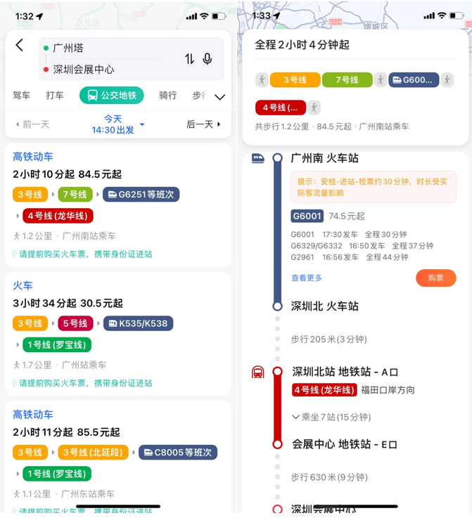 春节假期临近,返乡过年或出门旅游的需求开始增加。为了帮助人们更方便地安排跨城出行,高德地图公共出行服务近日进行了全新升级,可在全国范围内,为用户提供火车动车+公交地铁的“门到门”的跨城路线规划,还可提供一键购买火车票的服务,帮助用户提升出行效率。